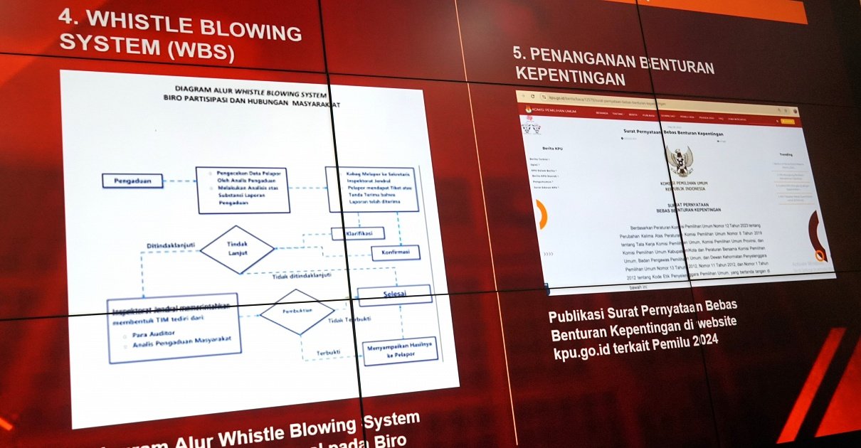 Dalam paparannya, Friesmount menyoroti pentingnya Whistle Blowing System (WBS) sebagai sarana efektif mendeteksi dan mencegah korupsi. “Kami mendorong seluruh jajaran KPU agar tidak ragu melaporkan indikasi korupsi, karena perlindungan terhadap pelapor adalah prioritas kami,” tegasnya.